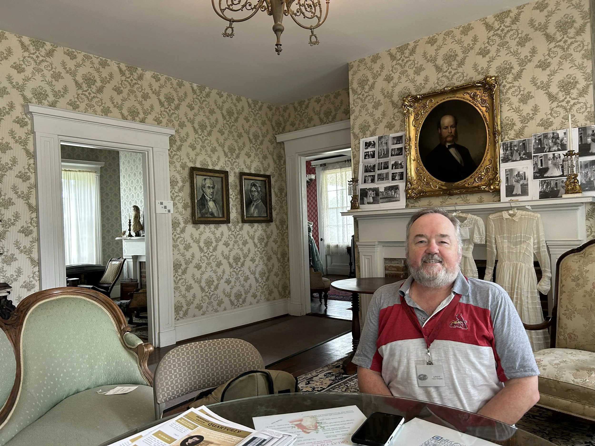 Andy Theising in the main room of the historic Taille de Noyer house in Florissant.